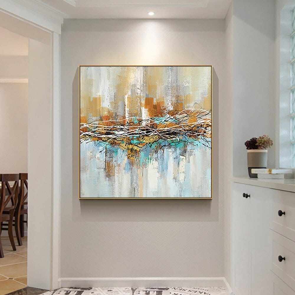 Measuring at a generous size, this canvas wall painting is not only visually striking but also versatile enough to complement various interior styles, from minimalist to contemporary. The high-quality oil paints used in this artwork ensure rich colors and durability, promising a long-lasting addition to your art collection. The handcrafted quality and authenticity of this original painting ensure that it stands out as a home or office decor.