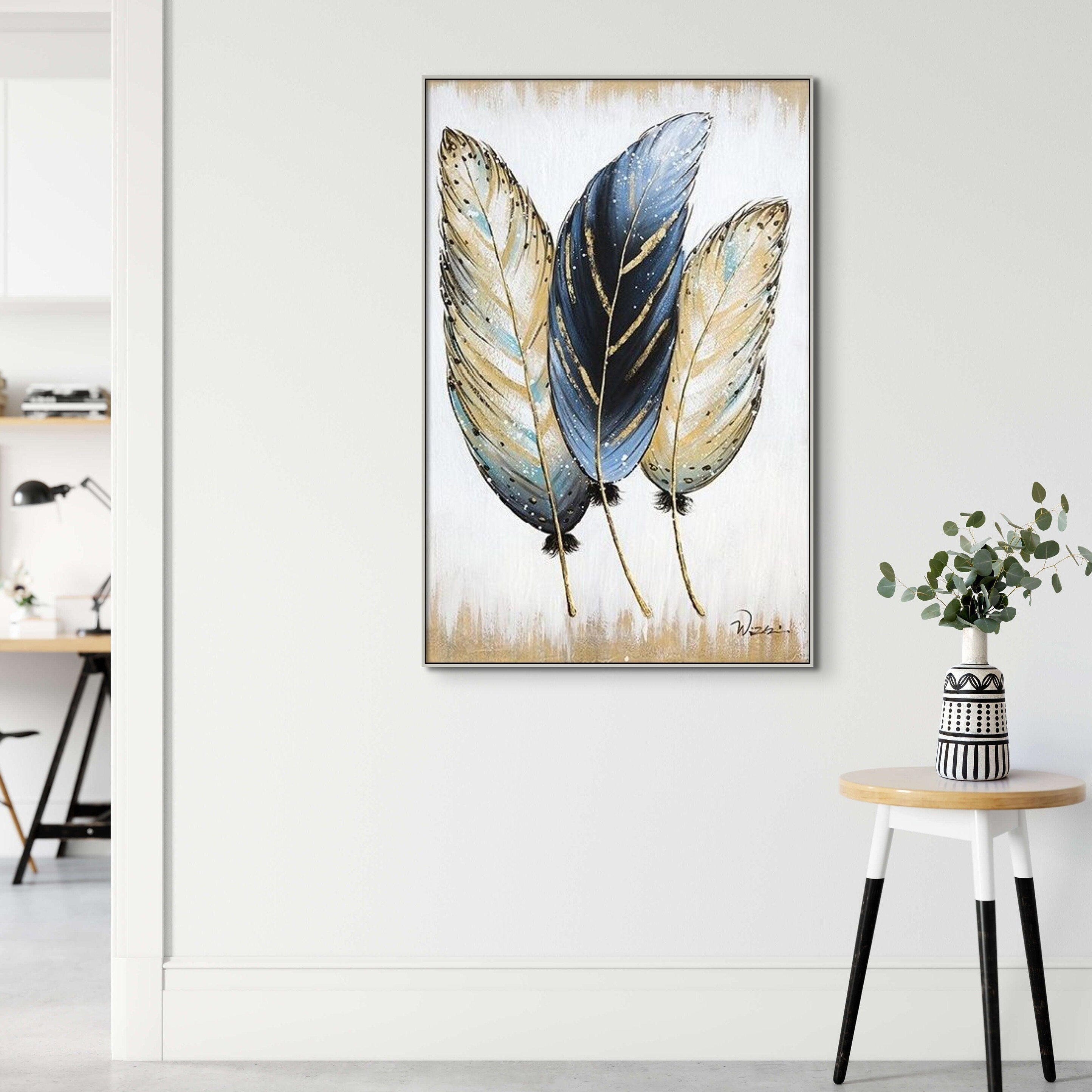 Wall Painting Feathers Hand Painted Oil Painting On Canvas Handmade Abstract Modern Vertical Wall Art Painting For Living Room | Home Decor