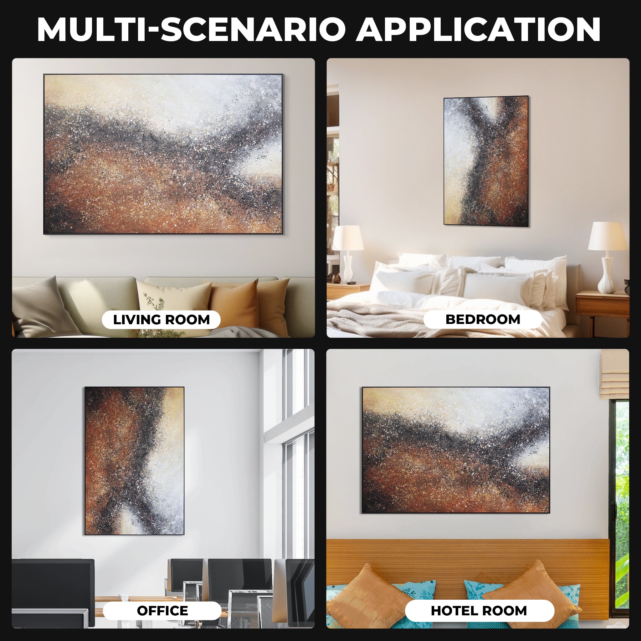 Abstract Canvas Artwork Painting, 47" Black Brown Living Room Wall Decor