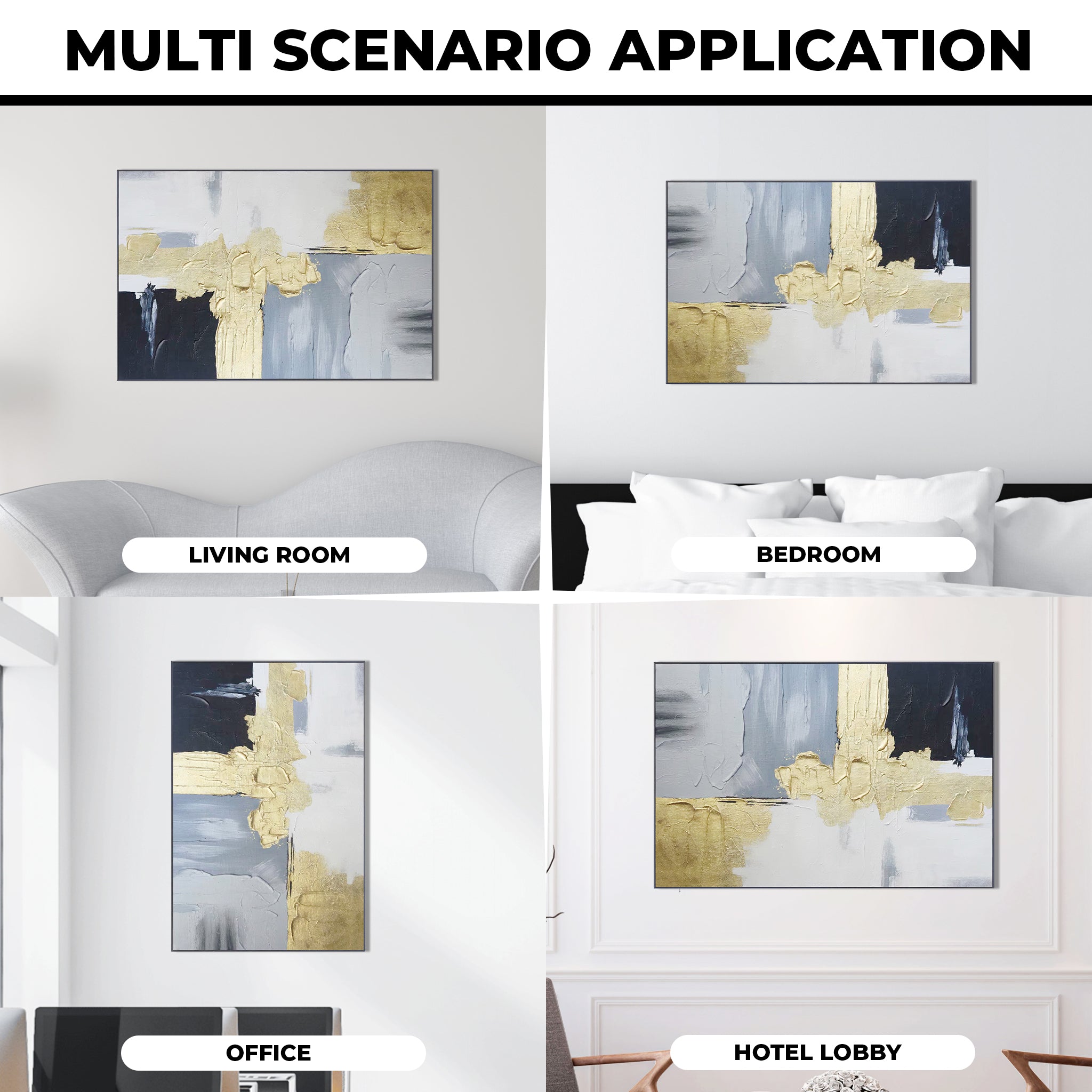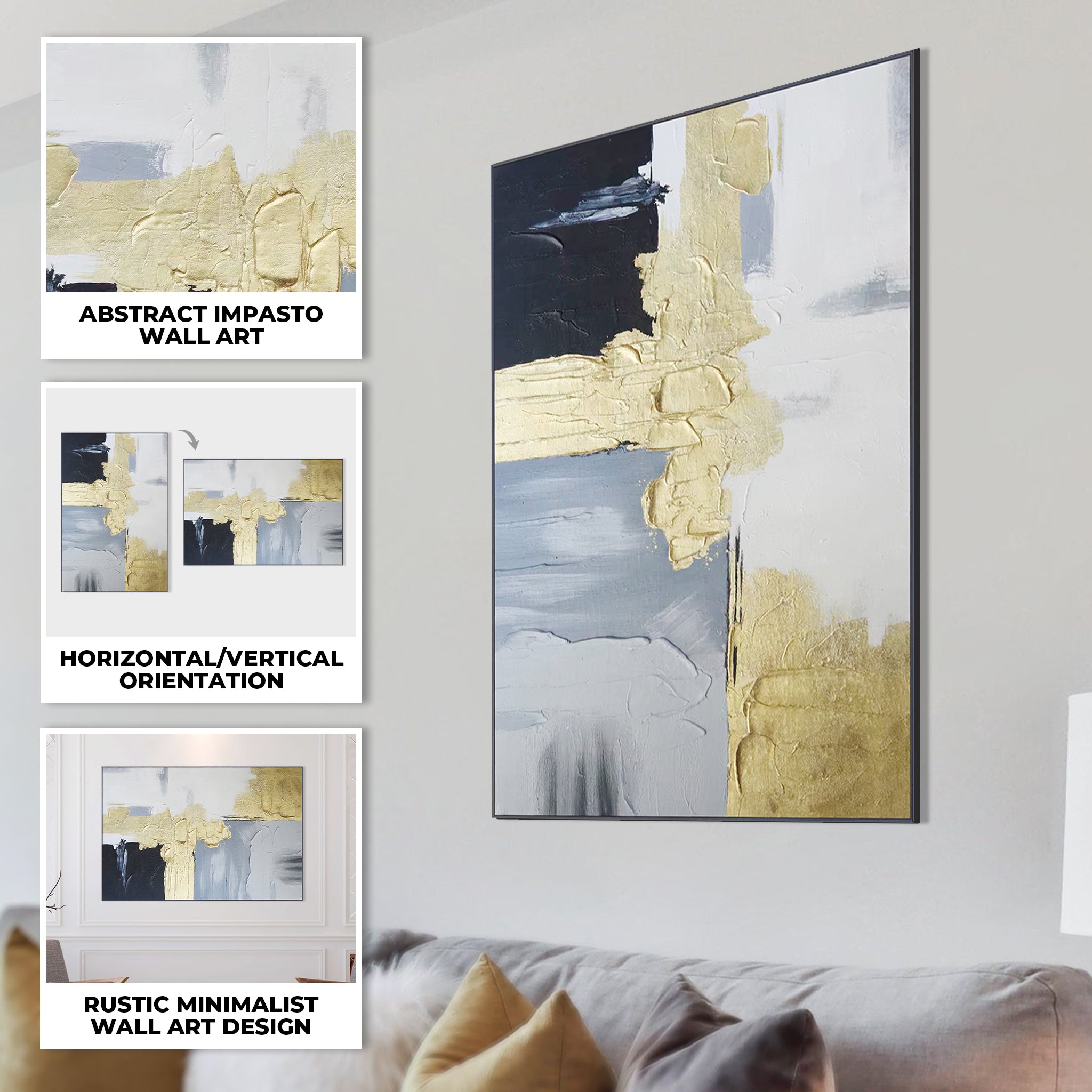 Elevate your living space with the Golden Grey Wall Painting, a striking 47-inch abstract textured artwork designed to add elegance and modern sophistication to any room. This exquisite piece features a dynamic blend of soft greys, shimmering gold accents, and layered textures, creating a stunning visual depth that captivates the eye. Perfect as a focal point in your living room, office, or bedroom, this painting brings a sense of serenity and artistic flair. Crafted on high-quality canvas, it’s easy to hang and complements various interior styles, from contemporary to minimalist décor. Let this masterpiece transform your space with its refined beauty and timeless appeal.