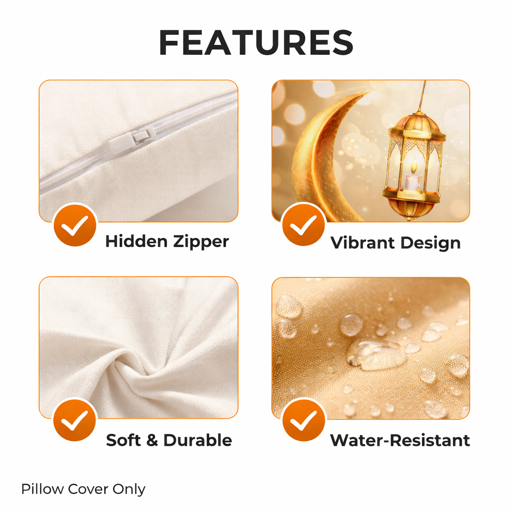 Upgrade your living space with the Modern Square Cushion Cover. Designed for those who appreciate clean lines and contemporary aesthetics, this cover blends high-end style with everyday durability. Whether refreshing your sofa, accenting a bedroom, or adding comfort to your home office, the pillowcase provides an instant interior upgrade without the designer price tag. Square at 17 x 17 inch, it's perfect and comfortable anywhere you wish to place it. Perfect as a gift for Ramadan or other related Islamic activities. NOTE: Only cushion cover is included (cushion core is NOT included).