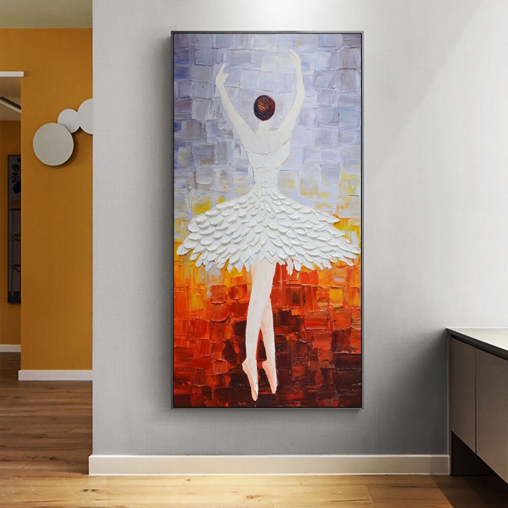 Abstract Dancer Art - Contemporary Ballerina in White Skirt Painting, Framed Ballet Art for Home Decor, Perfect Gift for Art Enthusiasts