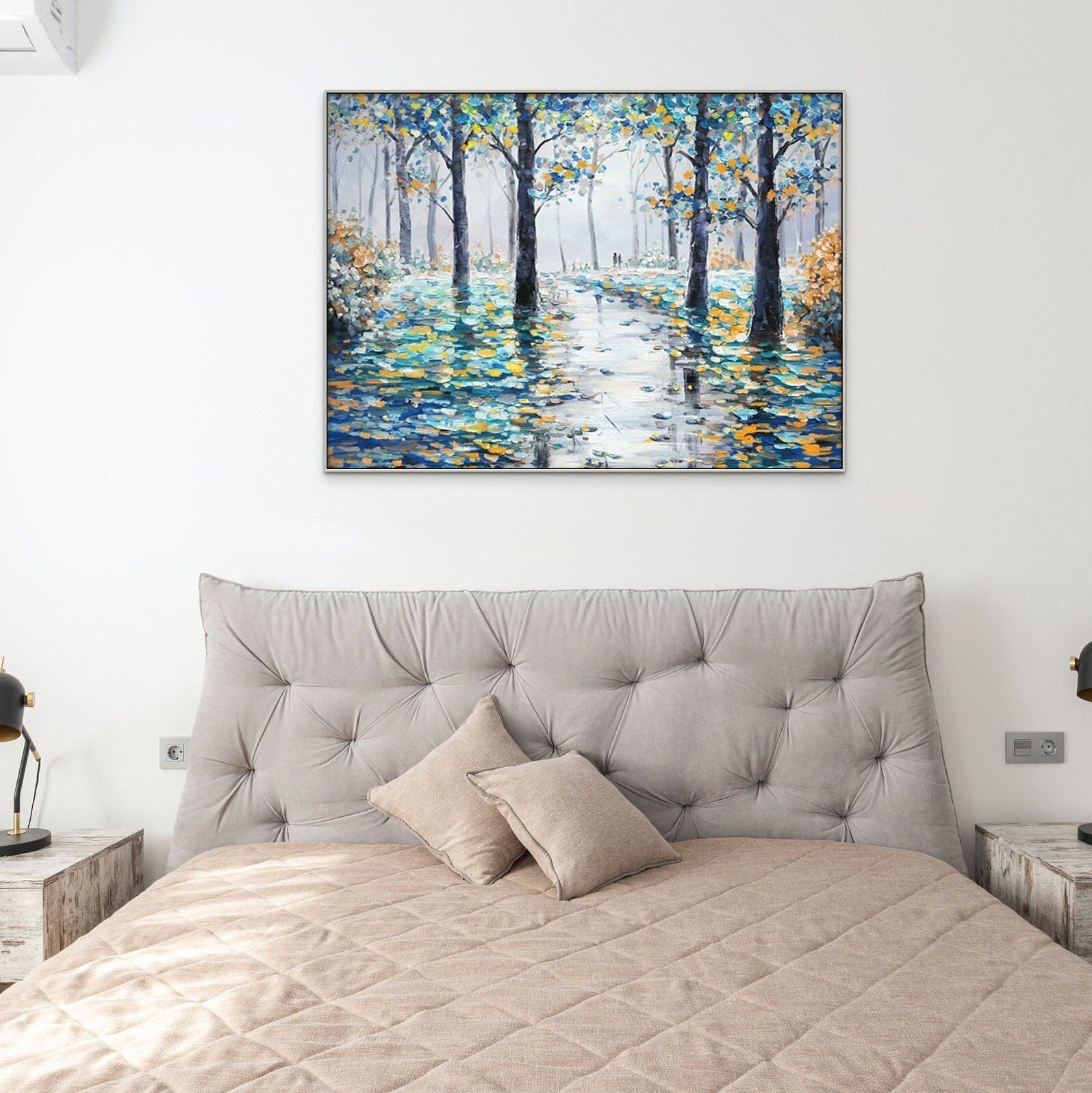 Autumn Forest Painting - Large Textured Wall Art on Canvas, Hand-Painted Fall Landscape for Bedroom Decor, Original Wall Painting