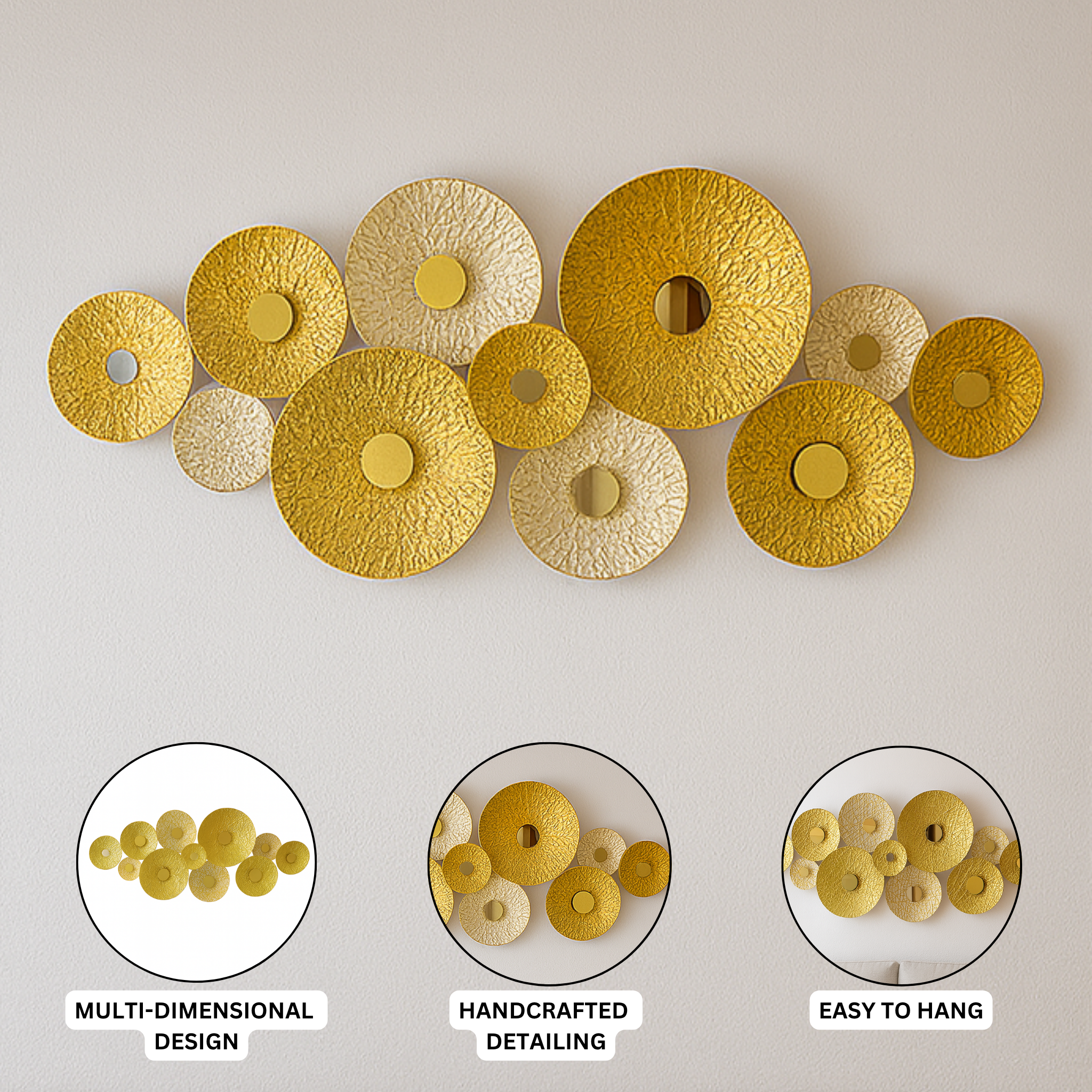 • HIGH-QUALITY CONSTRUCTION: Crafted from durable, high-quality metal, this golden wall art is built to last and designed to be cherished.