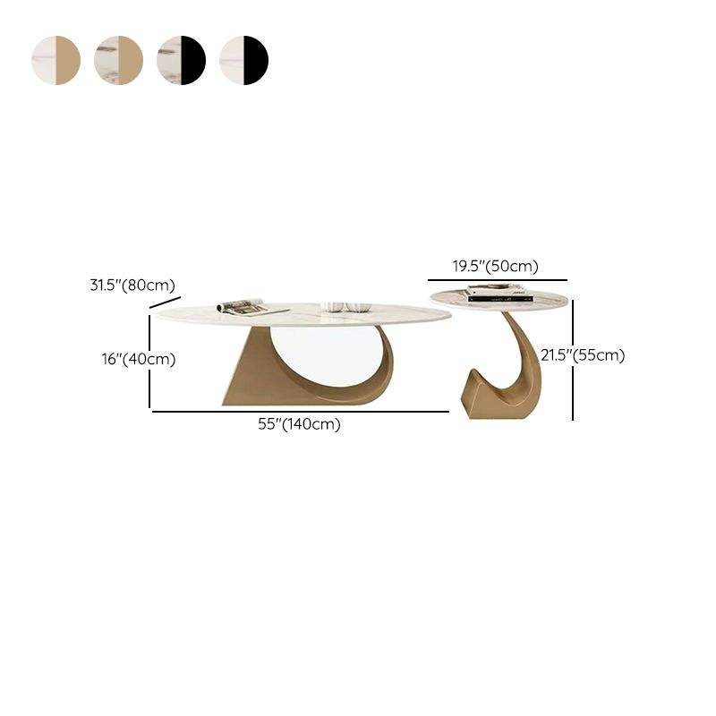Modern Oval Coffee Table Set 47" and 20" White Marble Top, Metal Gold Frame