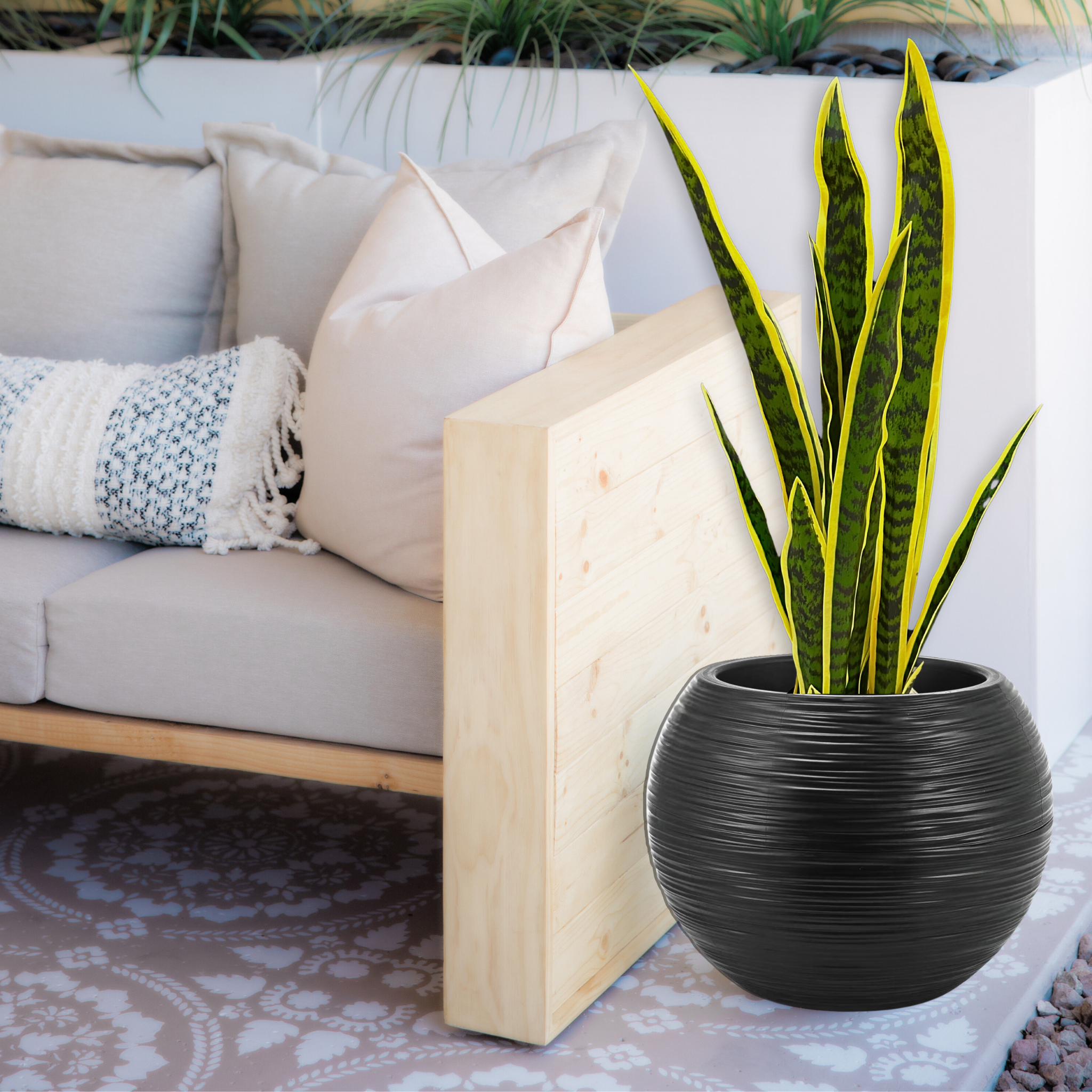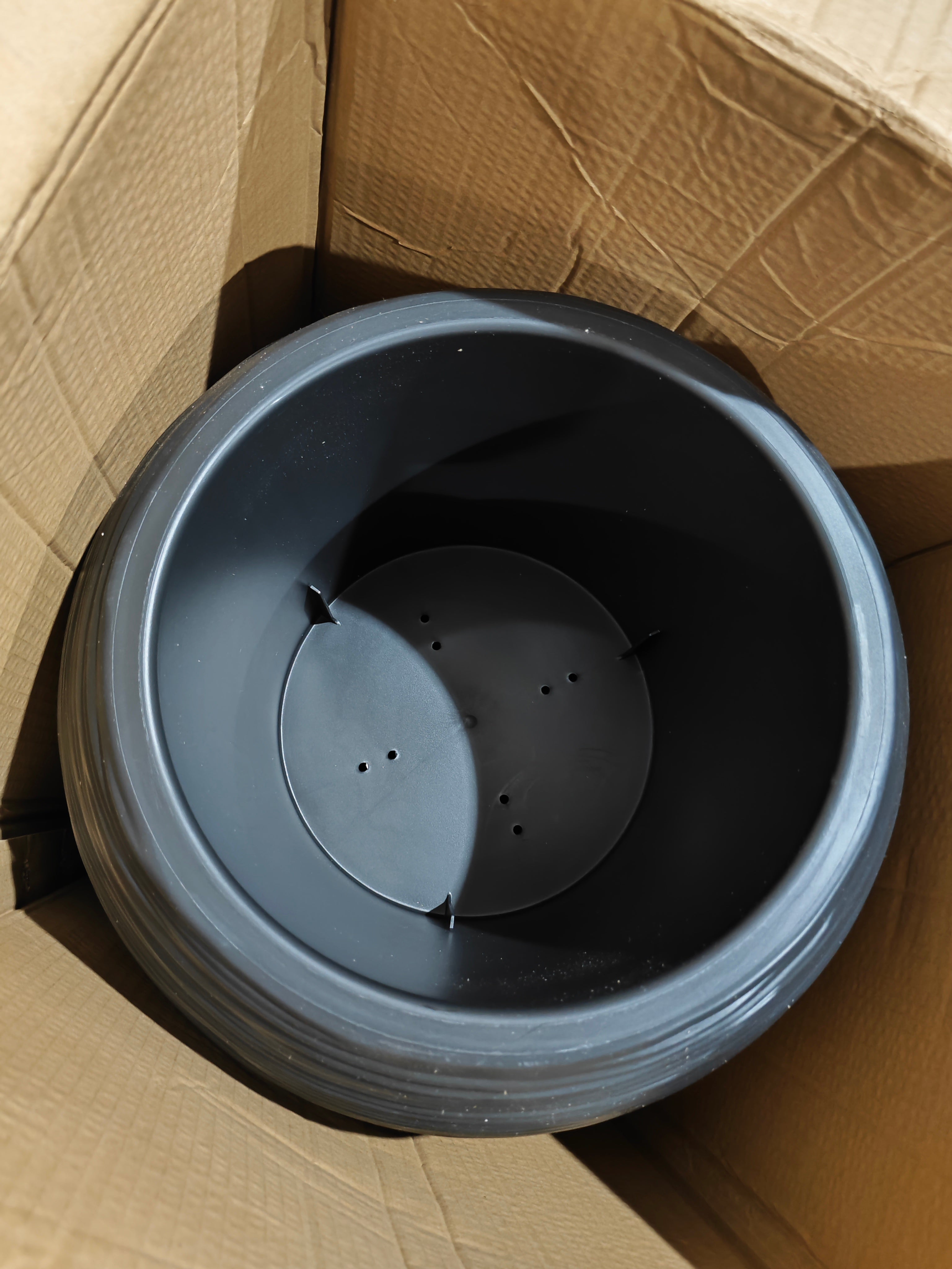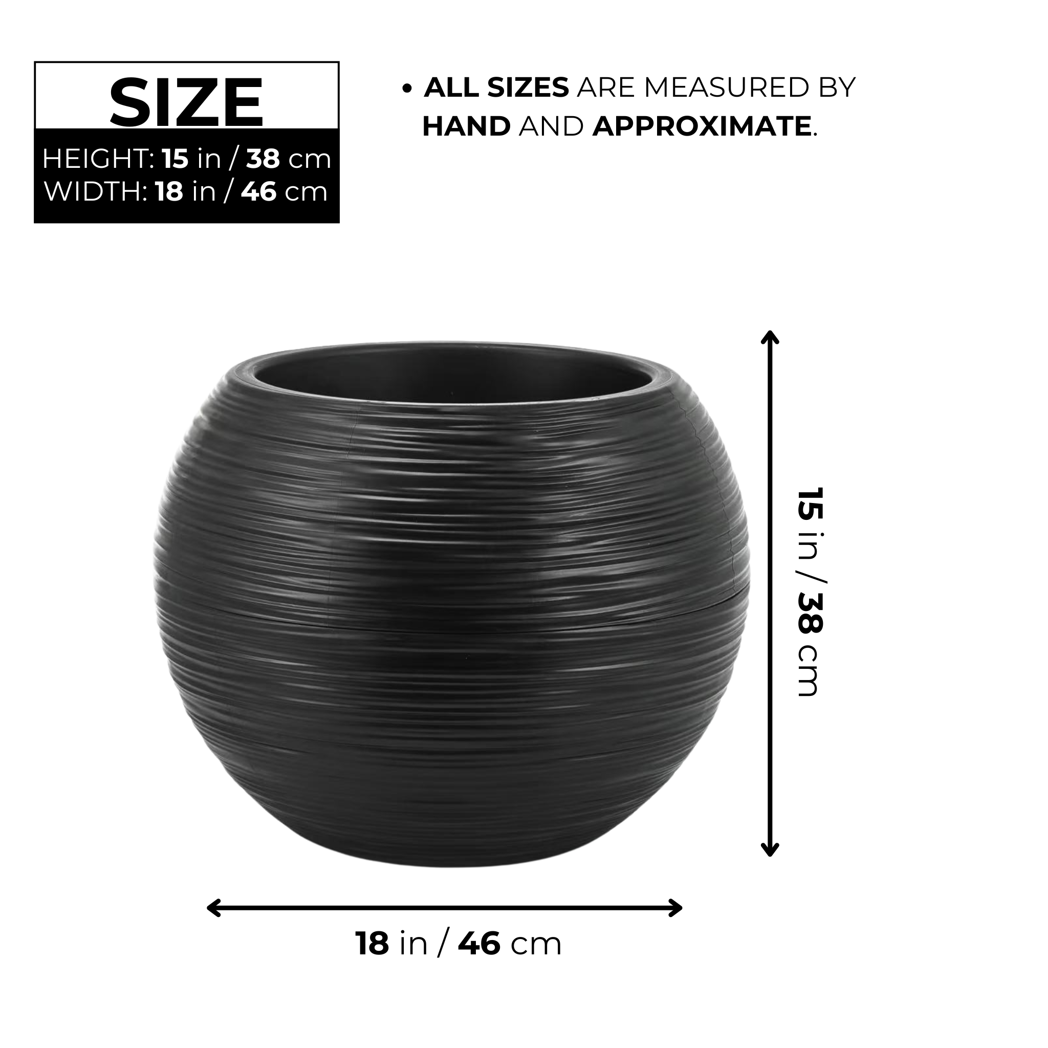 Upgrade your indoor or outdoor space with this Round Black Planter Pot, designed to seamlessly blend into any modern home or office decor. Crafted from high-quality plastic, this 18-inch indoor/outdoor vase brings a sleek minimalist look to your garden, patio, front porch, or entrance. Whether you're showcasing vibrant flowers or lush greenery, its mid-century modern design adds a timeless decorative touch to your space. Ideal for both indoor and outdoor use, it combines durability, lightweight convenience, and a functional drainage hole option to keep your plants thriving. It comes with a unique glazed wave pattern. Marked with an easy-to-grill spot right at the center of the pot's bottom, you can opt to have a drainage hole to avoid overwatering.