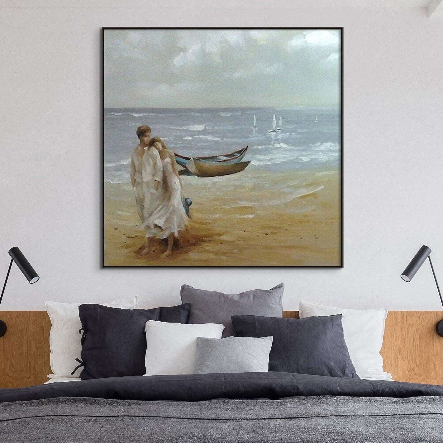 Romantic Couple on Beach, Painting on Canvas, Textured Wall Art, Original Hand Painted Oil Painting on Canvas for Living Room, Bedroom Art