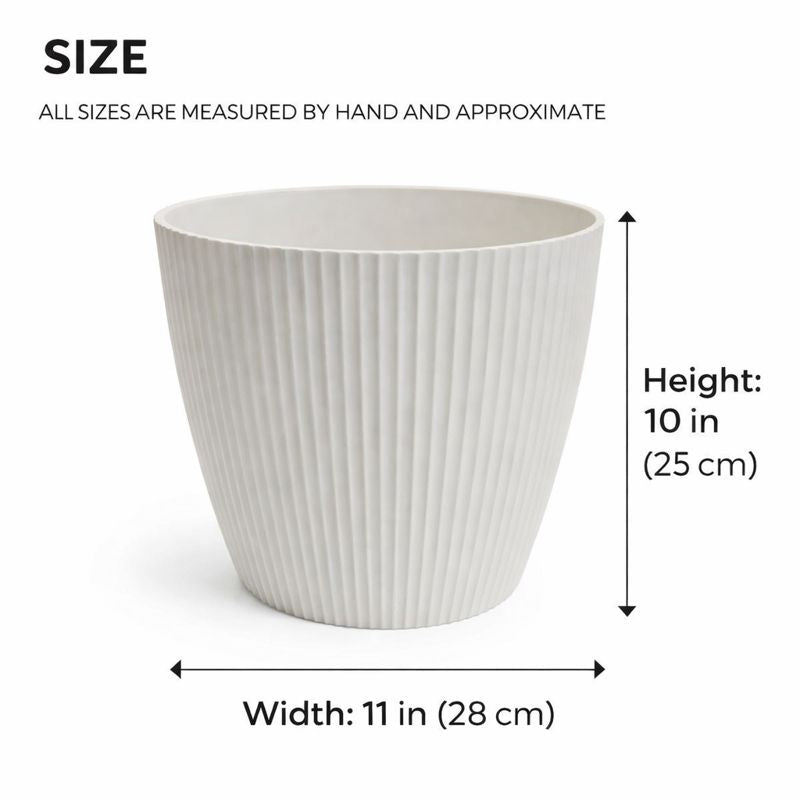 Add greenery into your home or garden with this minimalist white planters. Designed with a clean, contemporary silhouette, the 11 inch pot provides a versatile home for everything from vibrant fiddle leaf figs to seasonal outdoor blooms. It is made of durable plastic for a stable support for your plants, herbs, or blooms and comes with a drainage hole to prevent overwatering. It's a practical gift for mom on any occasion and matches with any interior styling - be it modern contemporary or traditional design.
