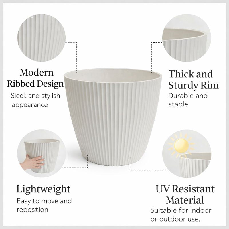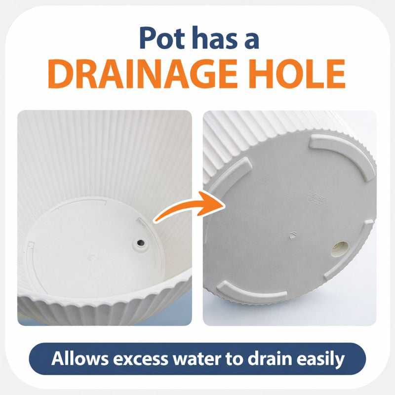 Modern Round Plastic Planter, 11 inch White Flower Pot with Drainage Hole, Home Office Garden Decor